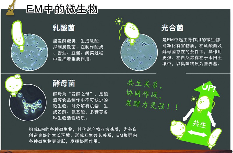 EM是由多種安全有效的微生物復(fù)合而成的多功能微生物菌劑。微生態(tài)是整個(gè)生態(tài)系統(tǒng)的基礎(chǔ),使用EM能使微生態(tài)結(jié)構(gòu)更豐富,從而使整個(gè)生態(tài)系統(tǒng)更活躍。EM技術(shù)是由比嘉照夫博士于1982年發(fā)明的,現(xiàn)仍不斷技術(shù)進(jìn)步中。